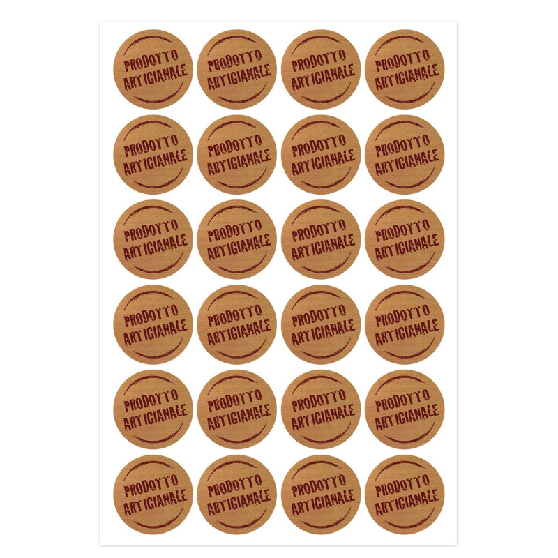 Dai un segno distintivo al tuo prodotto: utilizza le Etichette adesive Prodotto Artigianale in carta Kraft! Grazie a questo chiudipacco potrai mettere in evidenza l'artigianalità del tuo prodotto.