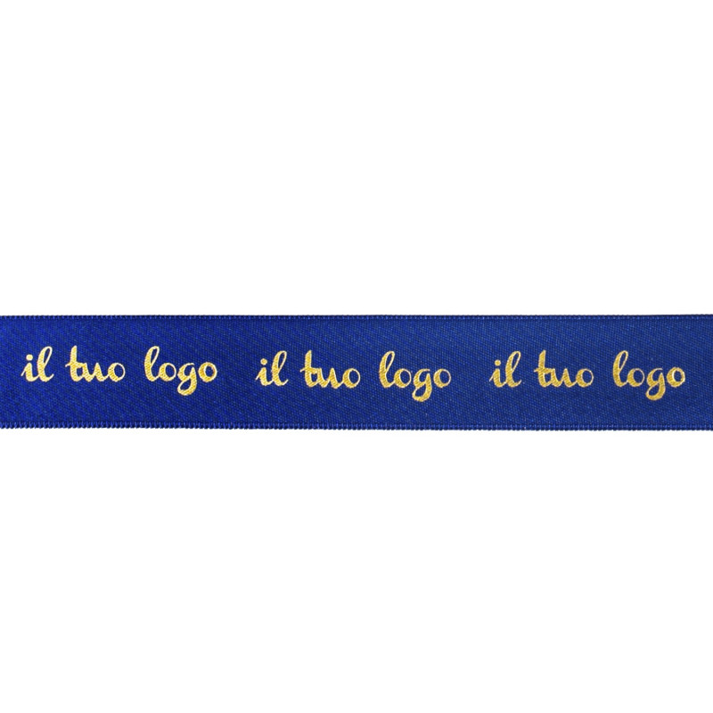 500 metri di nastro doppio raso da personalizzare con logo con stampa a caldo, tinta unita, 100% poliestere liscio e lucente, varie misure. Scegli il colore, la misura e invia il tuo logo.