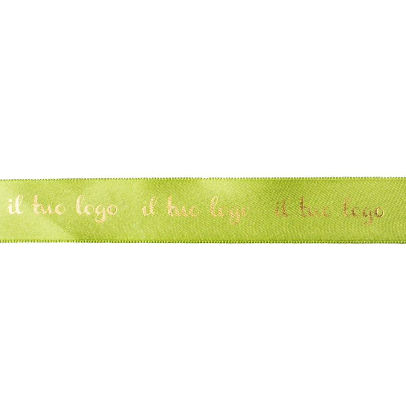 500 metri di nastro doppio raso da personalizzare con logo con stampa a caldo, tinta unita, 100% poliestere liscio e lucente, varie misure. Scegli il colore, la misura e invia il tuo logo.